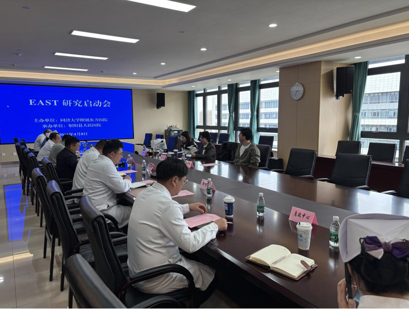 4月8日下午,盐城市射阳县人民医院与上海市东方医院(同济大学附属东方医院)合作的临床研究项目——脑卒中急救车早期启动左乙拉西坦及头位的研究(“EAST”)启动会在射阳县人民医院D区15楼第三会议室顺利召开。上海市东方医院党委副书记、副院长李刚线上出席会议,射阳县人民医院副院长陆永安,EAST项目组专家,该院相关科室负责人及骨干成员现场参会。