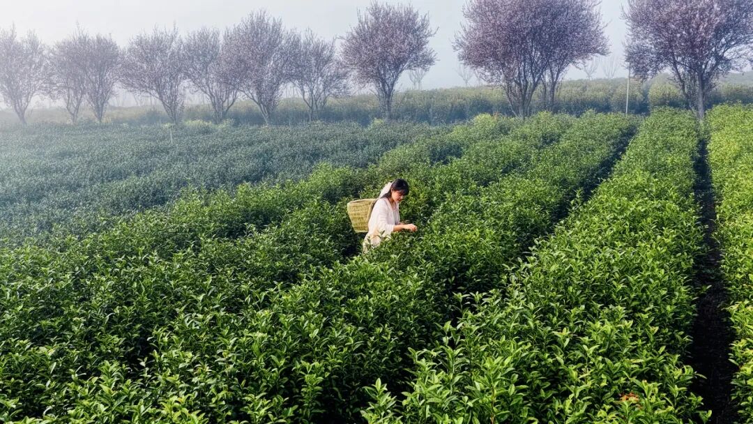 春茶采摘季,“青箬闲耕雨,红裙半采茶”的诗意在大泉茶园化为生活实景。