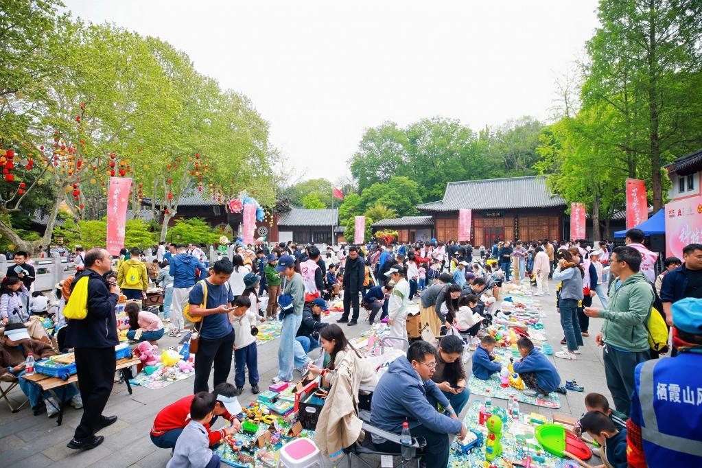 在栖霞山的林荫步道旁、观景平台上,闲置的图书、玩具、手工艺品等物品,被家长和孩子们精心布置成义卖摊位,五彩的摊位与山间的绿意相映成趣,成为栖霞山春日里一道别样的风景线。“这不仅是一场活动,更像一堂‘行走的思政课’”,一位家长表示,孩子们以“小小主理人”的身份参与其中,在山林中完成一次完整的公益体验,在分享中理解责任,在体验中感受创新,这种方式比课堂教学更加生动、更深刻。