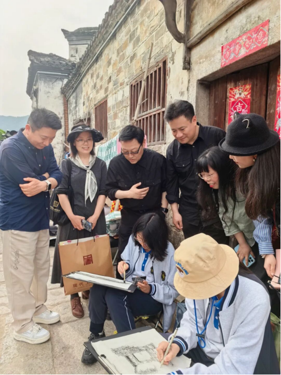 活动期间,高云深入各写生点位,驻足查看师生习作,从构图布局、笔墨韵味到意境表达,逐一细致点拨。他指出,中国画的生命力在于扎根生活、赓续传统,查济的青砖黛瓦、流水人家、晨雾炊烟,皆是最鲜活的创作素材。此次写生,绝非简单的“摹写山水”,更要引导学生读懂古村落的历史文脉,体会“外师造化,中得心源”的艺术真谛——在观察自然中捕捉笔墨意趣,在体悟传统中筑牢文化根基,让传统中国画的精神内核融入青春血脉,助力艺术薪火代代相传。