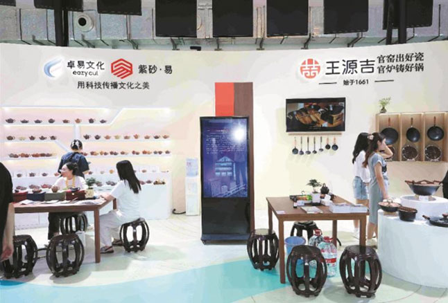 卓易文化带来200余款紫砂好物,其中“龙窑臻品Ⅱ”参加消博会“中国首展”活动。联名东坡书院的“遇见东坡”、前墅龙窑的“龙耀丰登”等IP新品集中亮相。该公司市场部负责人王静现场介绍,“200余款紫砂好物集结江苏馆,既是宜兴紫砂千年技艺的具象表达,也是我们以数字技术赋能非遗的创新答卷。”她特别提到,卓易文化打造的“物理指纹+区块链存证”鉴真模式,为每件紫砂作品赋予唯一数字身份,扫码即可追溯泥料、工艺、作者等信息,“让传统紫砂消费更透明、更可信”。