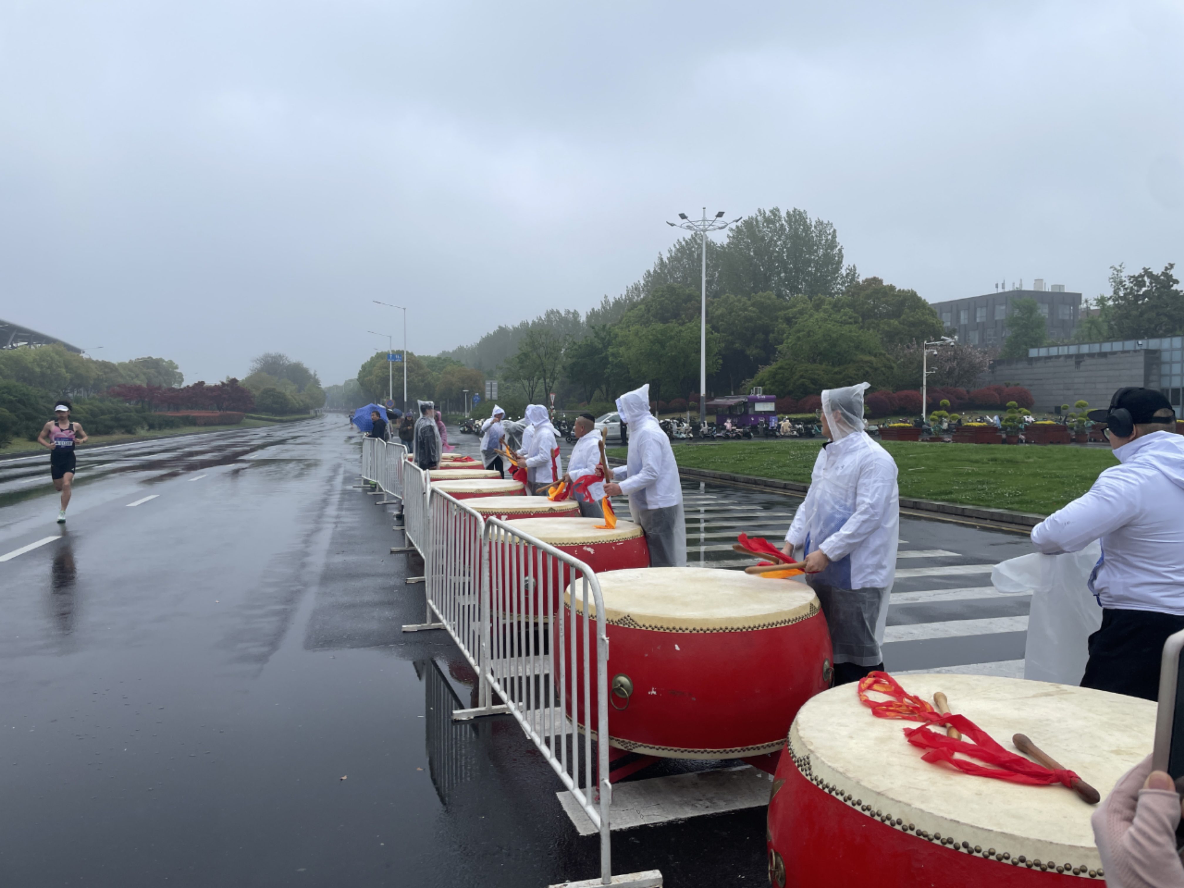 南京大学南门广场,栖霞大鼓队以一套行云流水的《鼓动仙林》,瞬间点燃起助阵的火热氛围。这支由五福家园社区居民组成的文艺队伍,曾多次亮相大型活动,是仙马赛道旁的独特风景。他们用雄厚龙鼓震破长空,将中华传统鼓韵深深烙印在每一位跑者的记忆里。