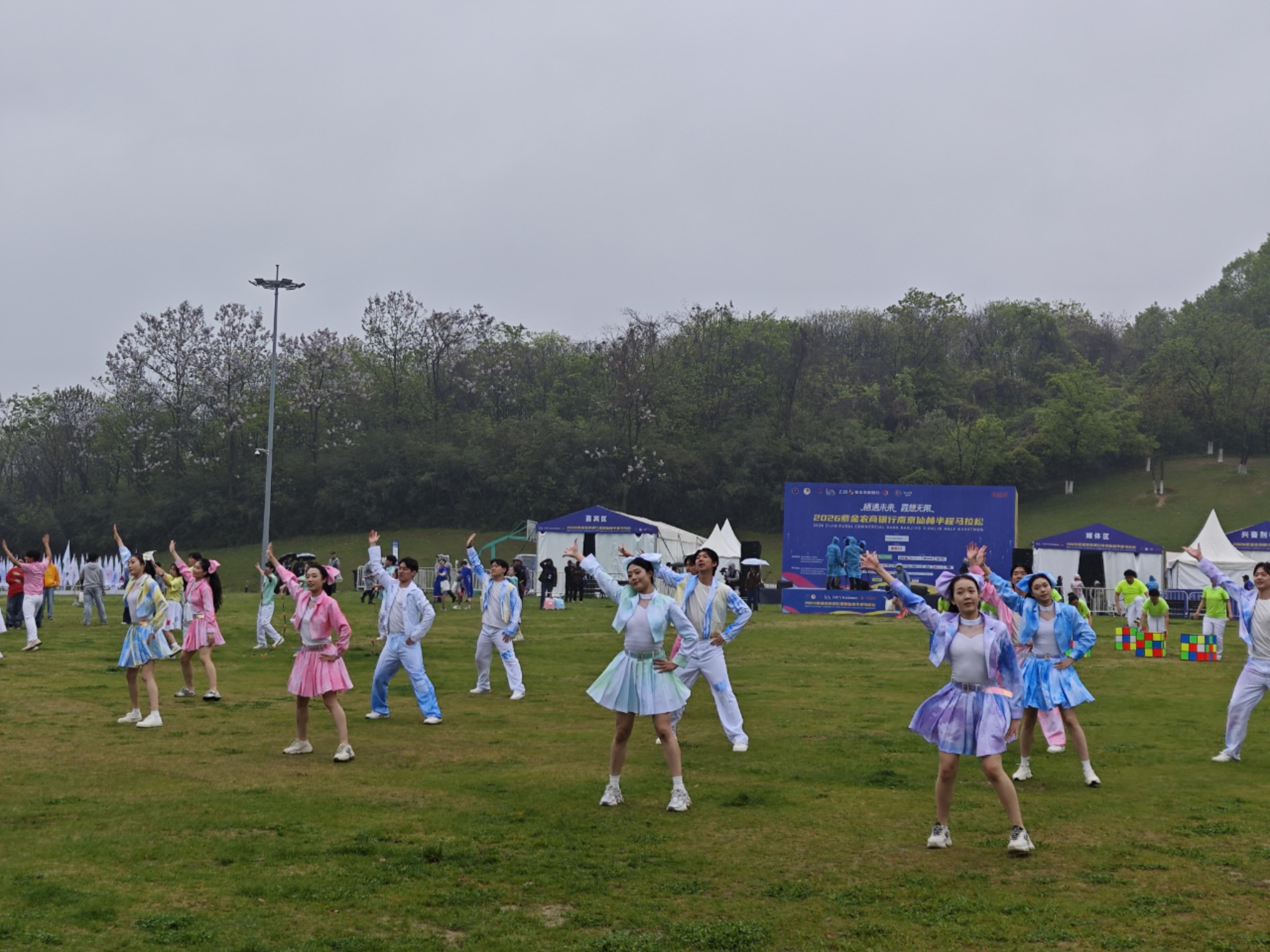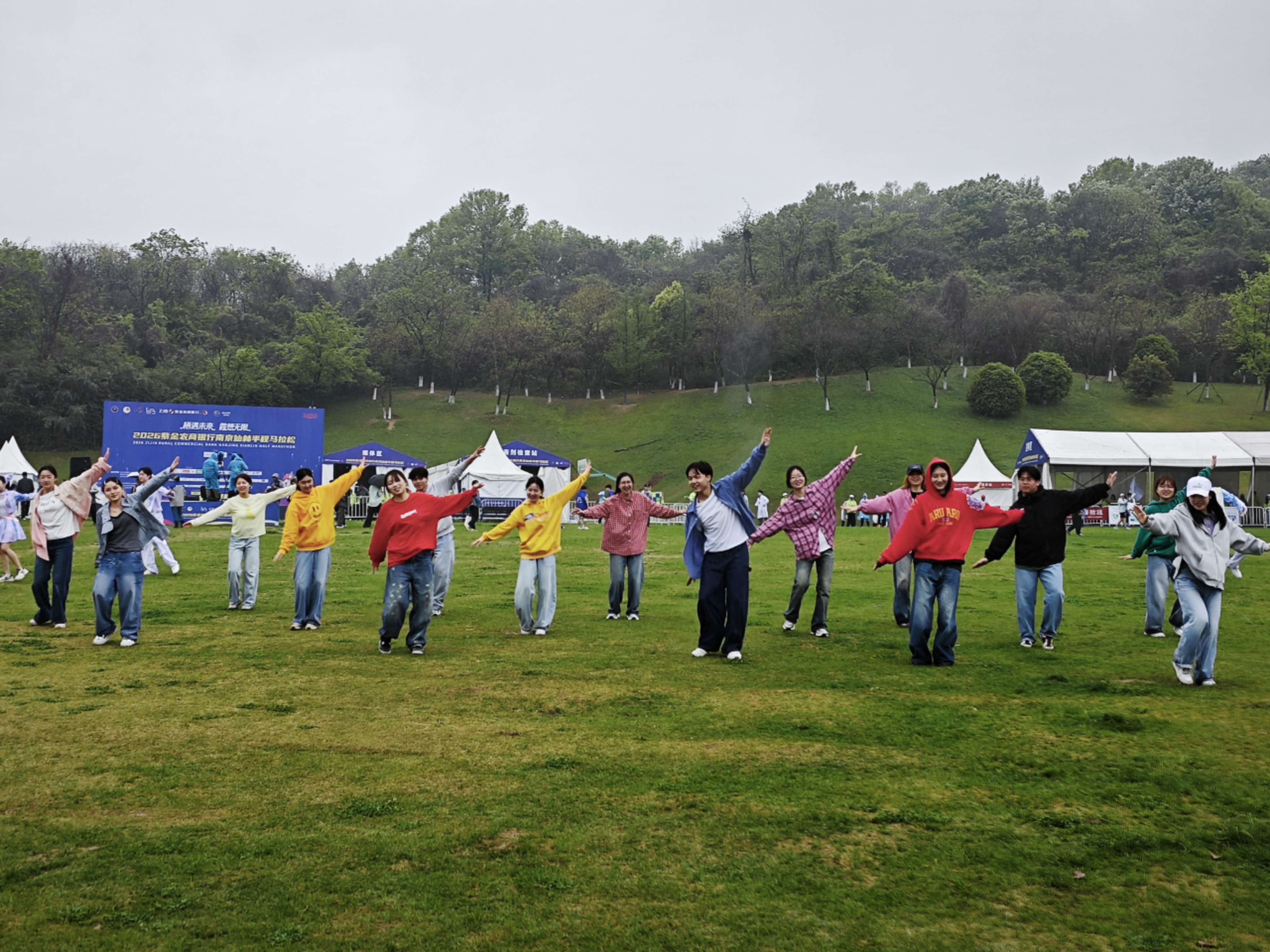 在终点羊山公园草坪,由栖霞区文化馆精心创排,南京邮电大学、南京特教学院、南京体育学院联合辖区青年舞蹈爱好者共同演绎的主题快闪《快乐小马》盛大登场。数十位舞者化身“快乐小马”,在青山绿水间腾跃、旋转、绽放——身姿灵动如音符,每一次跃起都是青春的宣言,每一次挥手都是对坚持的礼赞。