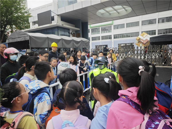 智能机器人的“上岗”,也成了孩子们上学路上的“惊喜”。不少学生上学时主动和机器人“交警”打招呼、合影留念,在轻松互动中学习交通安全知识,让原本严肃的交通安全教育变得生动有趣、入脑入心。
