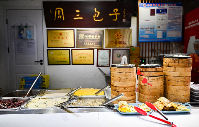 “听说要在‘苏超’赛场上展示了,这下可要成‘名店’啦……”在“淮安老字号”周三包子门店,不时有顾客送上祝福,同时咨询“苏超”期间的门店活动。如今,不仅皮薄馅大、口味适中、货真价实的包子深受顾客喜爱,“苏超”相关话题也成了大家热议的内容,这家传承了四十余载的包子店生意愈发红火。