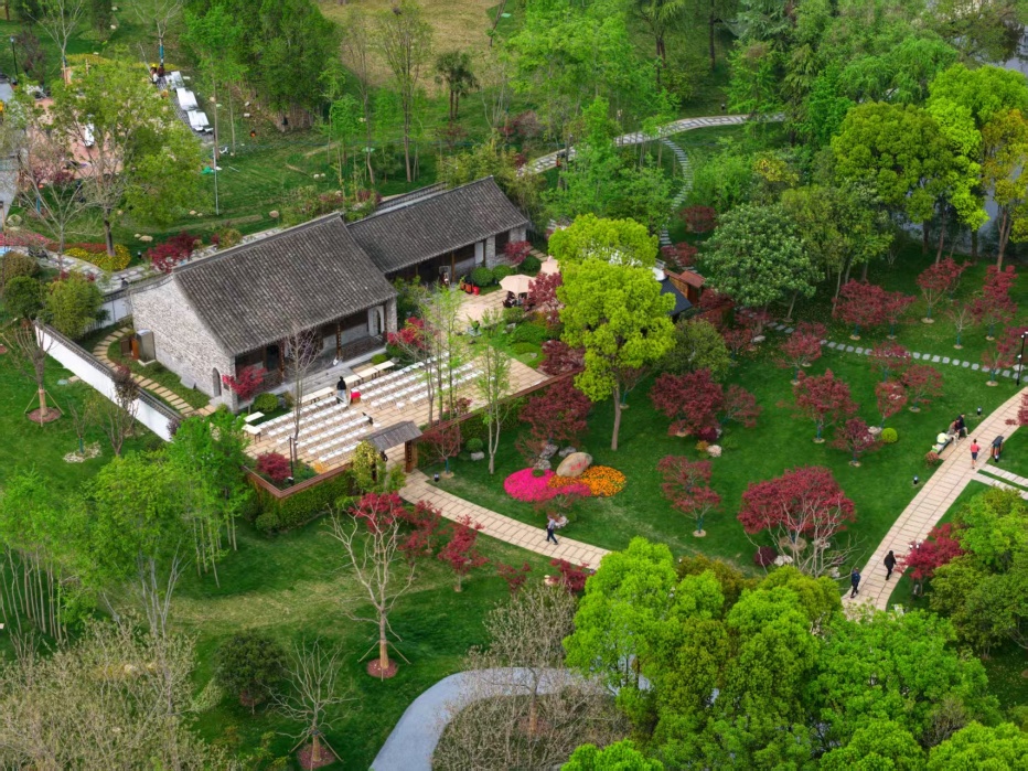 唐诗文化园汇集近现代名家书写的咏扬唐诗,以“露天诗林”形式点缀于林间绿地,搭配诗词坐凳、光影艺术装置等,让古典诗词可赏可感、入耳入心。铁佛红枫文化体验区依托五代铁佛寺历史底蕴,整合文化展示、文创展销、禅茶休闲等功能,生动呈现扬州古代冶金技艺与宗教文化的交融发展。唐屿森居·古邗城营地聚焦现代休闲需求,设置露营区、隋唐换装馆、茶咖空间、文创市集等功能区域,推出水上休闲、竹筏体验等特色项目,常态化开展隋唐主题音乐会、传统器乐展演等文化活动。园区还联合江苏里下河农科所打造大型花菖蒲展,集中展出100余个品种、近万盆花菖蒲,为游客带来多彩春日体验。