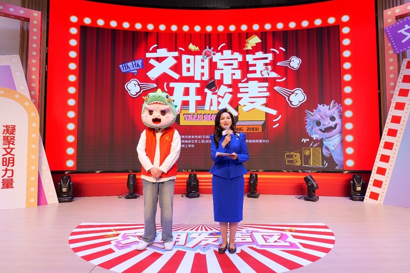 这场“文明秀”不仅全场“满座”,场内的笑声和掌声还引来后排众多“站票”。而场外,新北区文明宣传集市也同样热闹,飞行棋、掷沙包、扔飞盘、套圈圈,将文明交通、文明养犬、文明上网、文明旅游、文明观赛观演、移风易俗等内容融入小游戏中,寓教于乐,学生们通过打卡集章兑换“常宝”“恐龙妹妹”等心仪的文创。