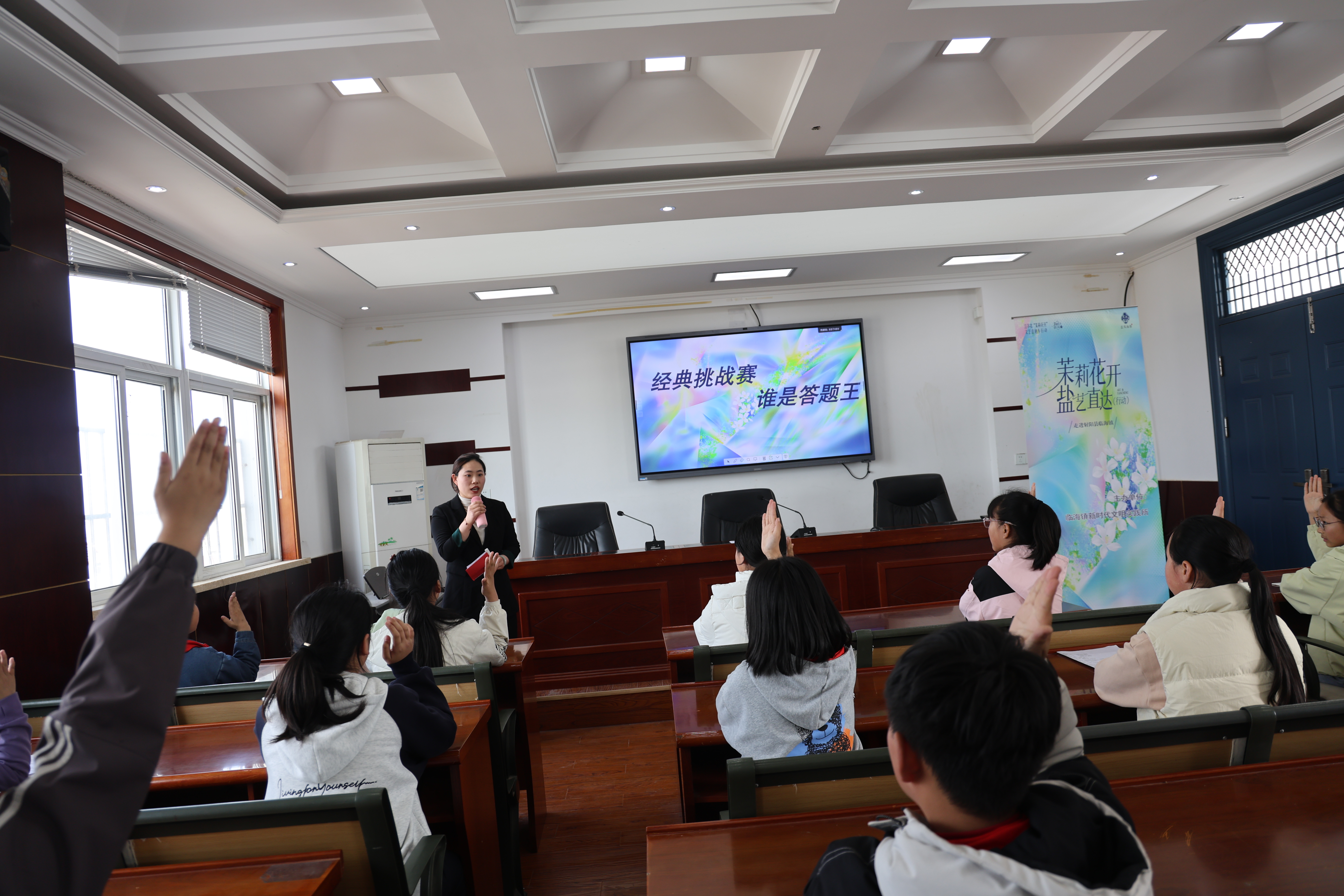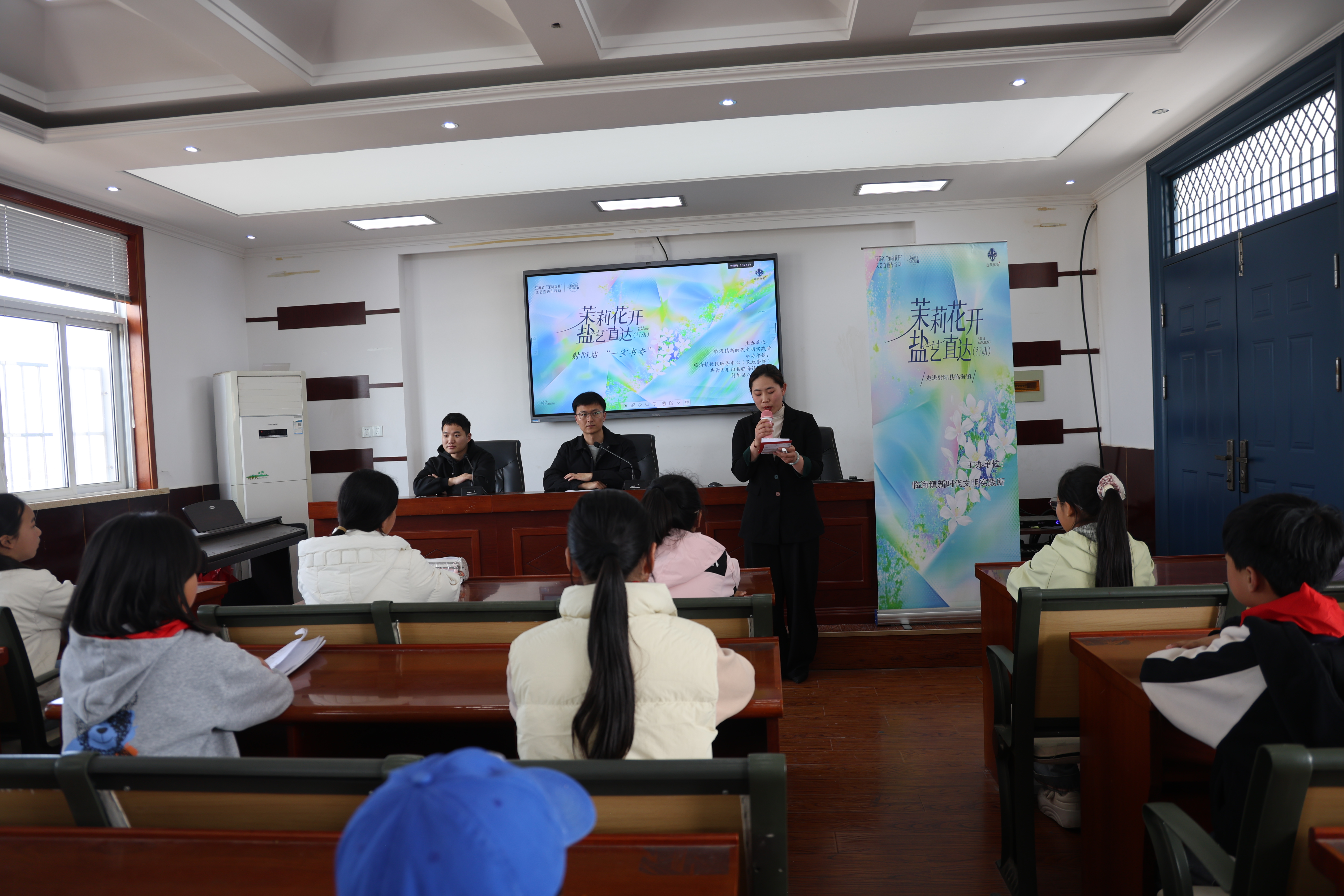 为扎实推进江苏省“茉莉花开”文艺直通车文化惠民工程走深走实,持续擦亮临海镇和“临”共读特色阅读品牌,4月17日下午,由临海镇新时代文明实践所主办,临海镇便民服务中心、共青团射阳县临海镇委员会、射阳县八大家小学共同承办的“茉莉花开·一室书香”主题活动,在八大家小学温情开展。