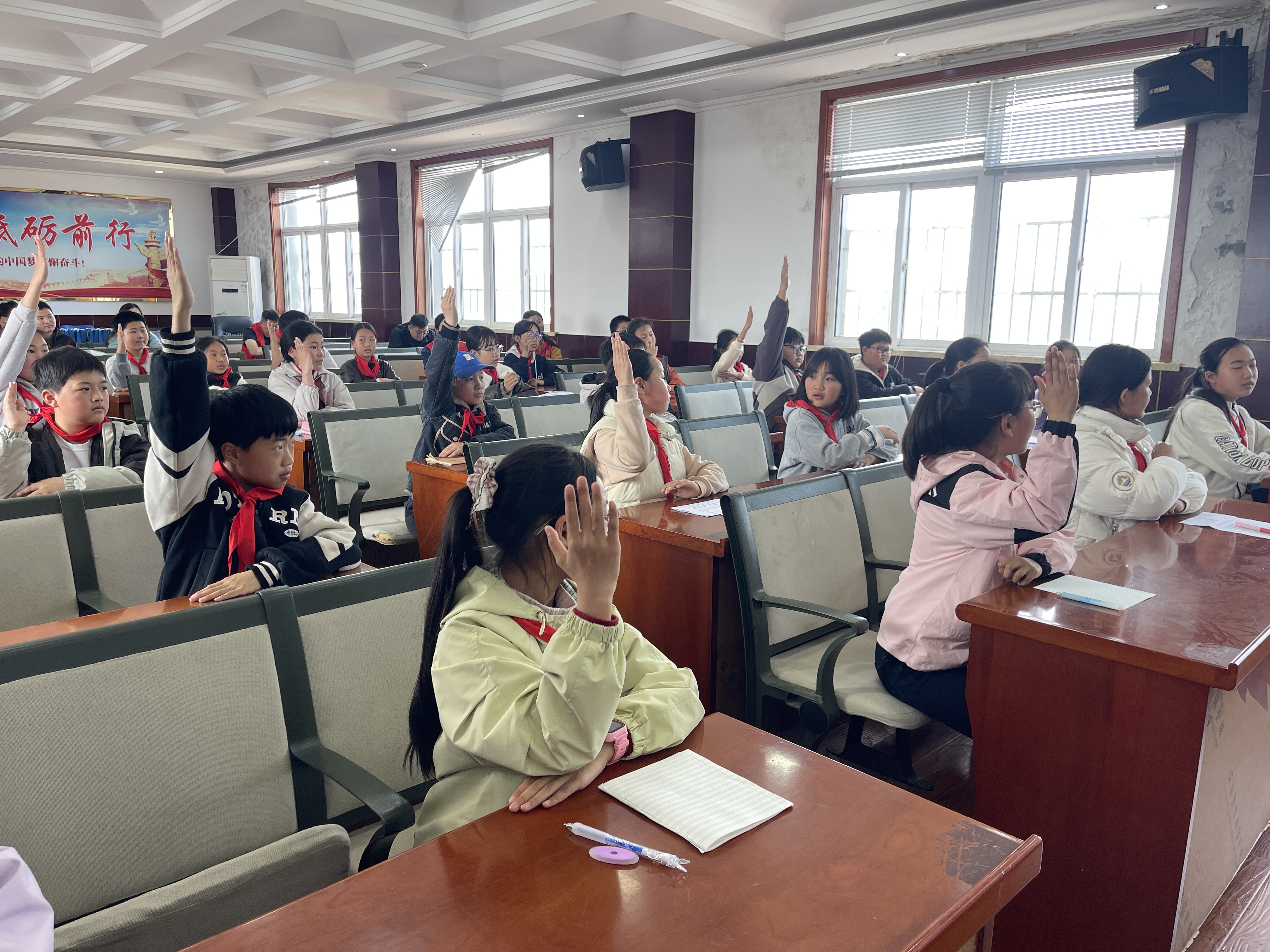 聆听完张同祥老人的阅读故事,紧接着,紧张激烈的四大名著知识竞赛,将现场氛围推向高潮。面对一道道题目,同学们个个精神饱满、踊跃参与,小手高高举起,争相抢答、自信作答,现场气氛热烈又活跃。哪怕题目难度不断提升,也丝毫没有打消同学们的参与热情,每一次正确回答都赢得现场阵阵掌声。