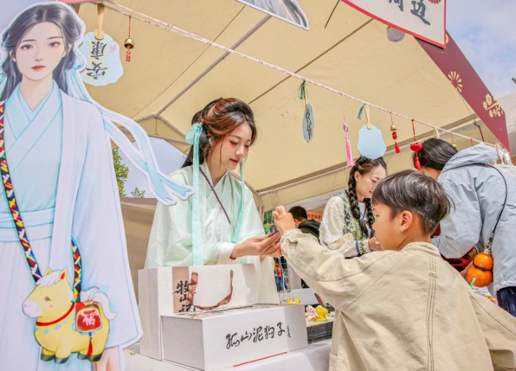 今年“三月三”市集共设300余个摊位,集中摆放在原孤山中学空地区域,划分非遗文创、商品百货、助农、美食、游戏等区域。不少市民都是全家同行,感受传统民俗气息。“今年的‘三月三’让人耳目一新,摊位布局规整、业态丰富,我们逛得非常开心。”市民刘峰说,“三月三,上孤山”是他他心中割舍不下的乡土情怀。