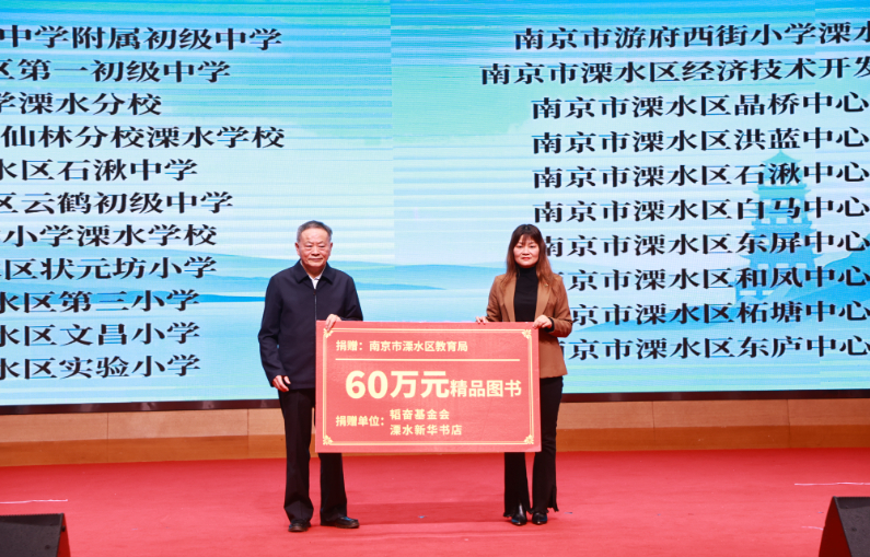 活动在孩子们稚嫩而铿锵的诵读表演《写好中国字 做好中国人》中开场。捐赠仪式上,韬奋基金会副理事长黄书元代表基金会,将凝聚着关爱与期望的优质图书捐赠给溧水区,这批价值60万码洋的图书涵盖文学、科普、历史等多个门类,将被分发至区内21所中小学校,助力构建“教室有书角、走廊有书架、校园有书吧”的书香校园阅读网络。