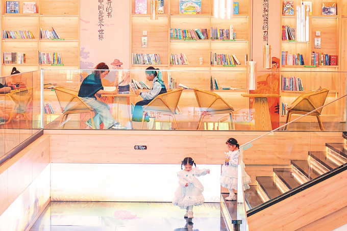 4月19日,宿迁市宿城区蔡集镇牛角村农家书屋,家长带着小朋友阅读书籍,品味书香。徐江海 摄 (视觉江苏网供图)
