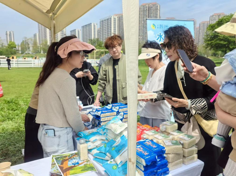 本次活动充分利用了“生态科技岛”的独特定位,以米之“莹白”呼应岛之“青绿”,让自然之色在春日的江畔交相辉映。活动现场,苏米好物齐亮相。“湖之韵”“江之玉”等苏米核心产品吸引众多市民驻足了解,现场交流氛围浓厚。此外,苏米领军企业的当家产品也竞相登场,展现出“水韵·苏米”家族的丰富品类。