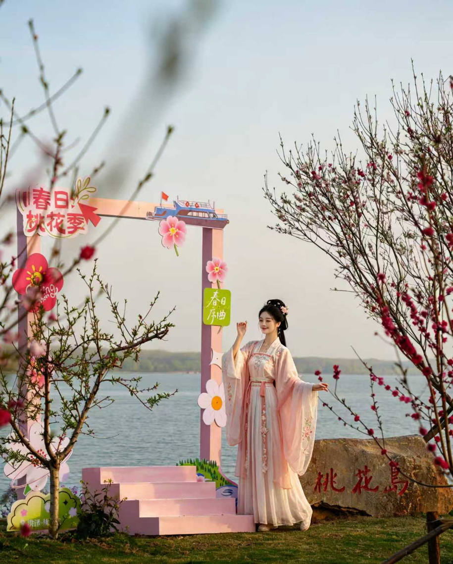 4月4日,古堰景区的桃花岛正式开岛。往返岛上的客船每班都座无虚席。岛上千株桃树竞相绽放,粉红的花瓣如烟霞漫至湖畔,与洪泽湖的碧波倒影相映成趣。漫步其间,“人面桃花相映红”的景象比比皆是。“真是焕然一新!去年这里还是一座普通小岛,今年就成了桃花盛开的景观岛。近看是粉色花海,远看是碧波万顷,仿佛走进了古典诗画中!”来自南京的摄影爱好者周先生一边调整相机参数,一边赞叹。