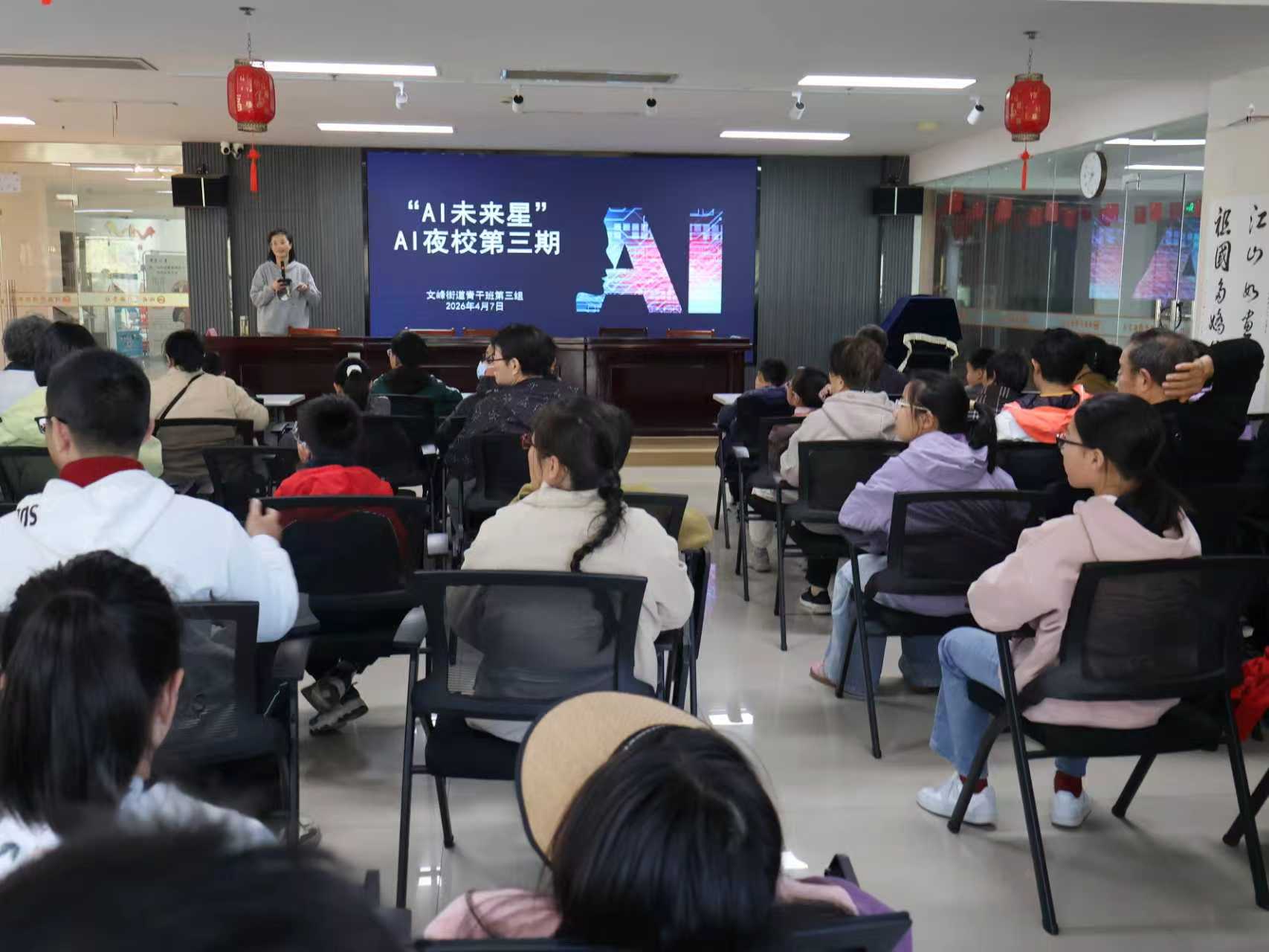 3月25日,崇川经济开发区明星社区开设“老年科技大学AI课程”,结合共享菜园智能化管理、志愿服务积分记录等生活化案例,让老年人轻松理解AI。文峰街道则聚焦青少年成长,推出“AI启智・书香伴学”春假托班与“少年创想营”AI夜校,让孩子们近距离感受AI魅力。