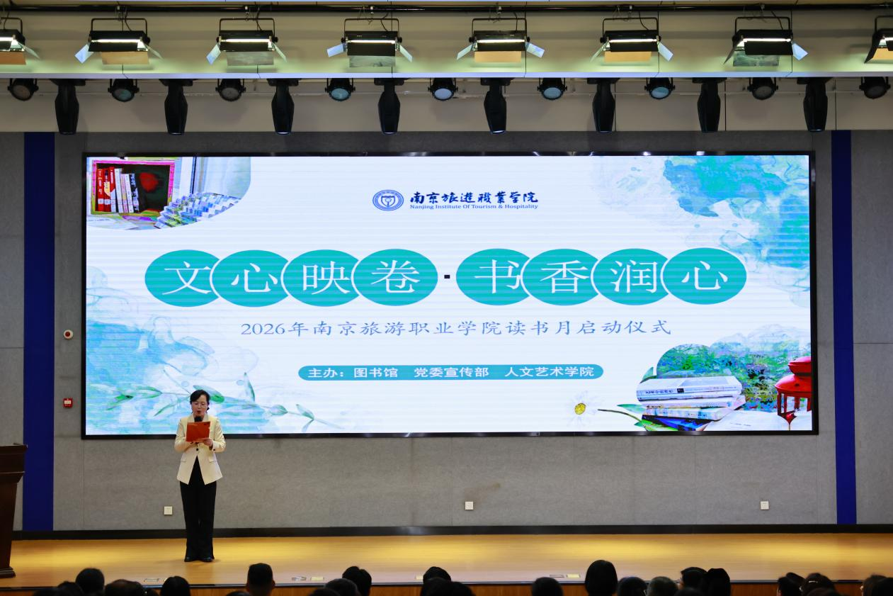 文旅融合,构建书香育人体系。学院长期将建设书香校园,作为提升办学内涵、培育时代新人的重要举措。仪式现场,叶凌波宣布南京旅游职业学院2026年“文心映卷·书香润心”读书月活动启动。院长操阳在讲话中向同学们提出三点期望:一是热爱阅读,通过多阅读、读好书,不断夯实自身的文化底蕴与职业品格,讲好自己成长的故事、讲好中国故事。二是潜心研读,通过研读,深耕自己的专业领域,践行勤于专研、求真务实的优良学风和工匠精神。三是广泛阅读,激发创新思维和能力。操阳强调,希望师生把读书月作为阅读的新起点,持续推动“书香校园”建设,以文润心、以学赋能,不断塑造优良学风与校园文化生态。