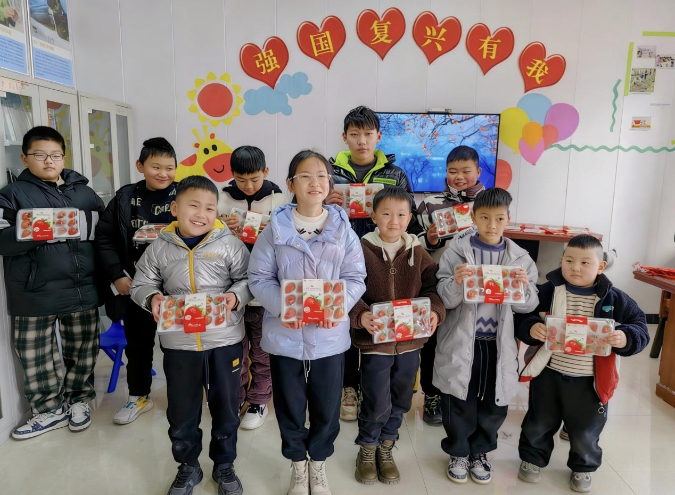 活动尾声,志愿者们为每个孩子送上一份鲜红饱满的草莓礼盒,这份甜蜜的鼓励,让春日的书香更加沁人心。苏庄村通过农家书屋这一精神沃土,让阅读的种子在孩子们心中悄然发芽。