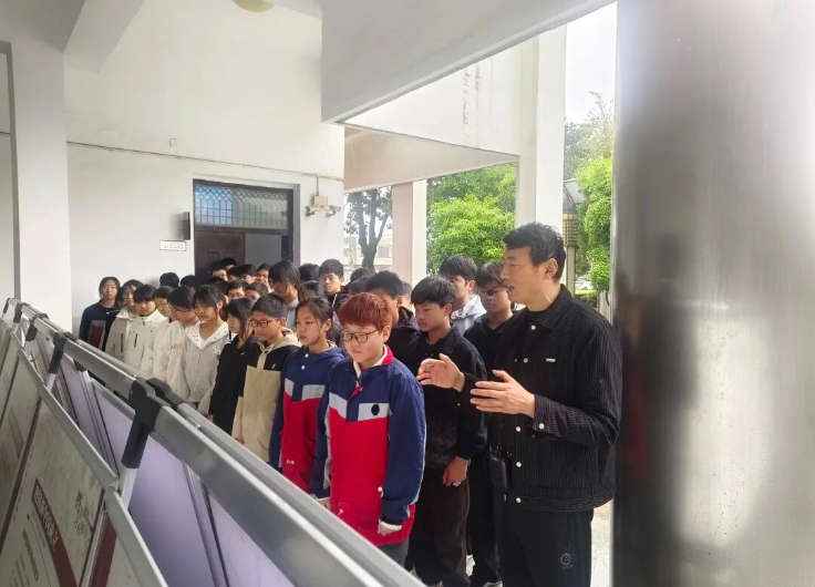 活动中,全校各班师生分批次有序参观图片展。同学们驻足、记录、低声交流……