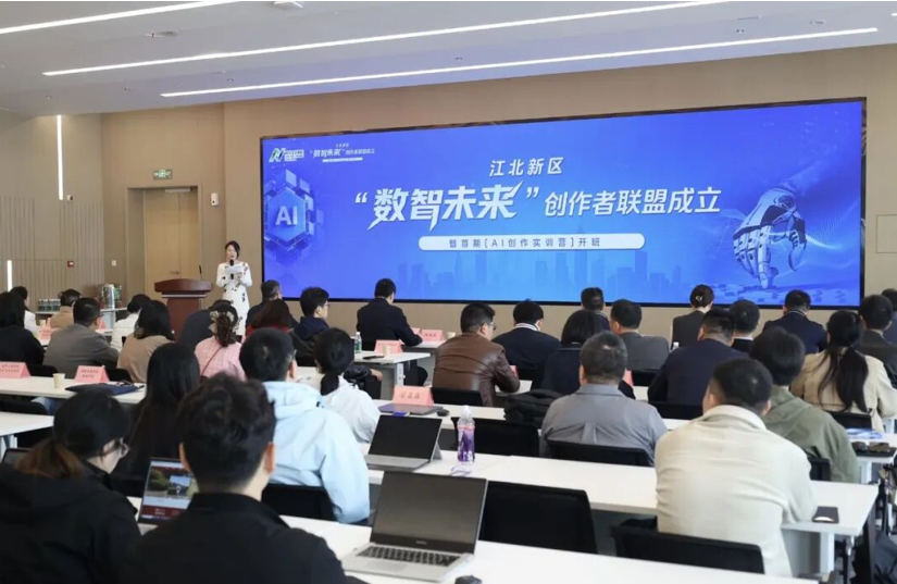 这是江北新区“数智未来”创作者联盟成立暨首期AI创作实训营开班活动上的一幕。十五分钟后,联盟成立的消息还在朋友圈刷屏,首期AI创作实训营已经紧接着开课。这不是一场“成立即结束”的仪式,而是一场“成立即开干”的实战。