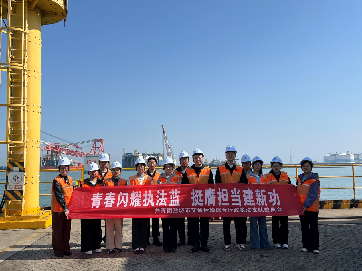 近日,盐城市交通运输综合行政执法支队团委走进滨海港,举办“青春闪耀执法蓝、挺膺担当建新功”主题团日活动。团员青年通过实地观摩学习、感悟红色精神、深化联建共建,在实践中凝聚青春力量、砥砺奋进斗志、彰显担当作为。