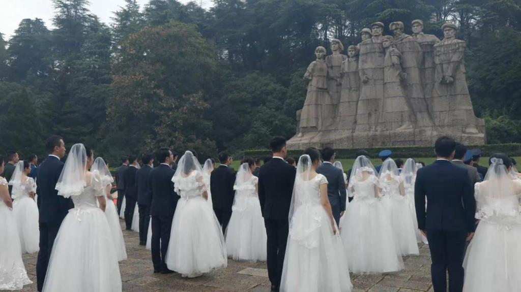 南京举行新婚夫妇向革命烈士献花活动