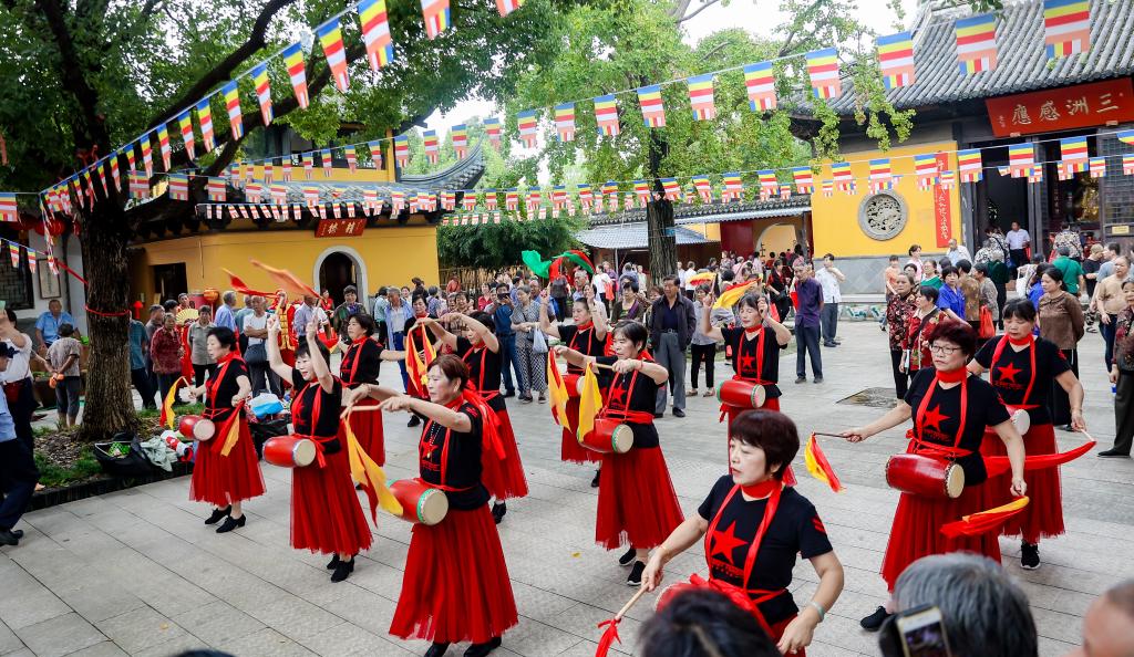 新华网南京9月14日电(记者刘巍巍)一场传承千年的“轧莲花”民俗活动14日在苏州高新区通安镇古莲华寺举行,市民和游客进香祈福、赶集采购,民俗文化魅力唤醒乡愁。