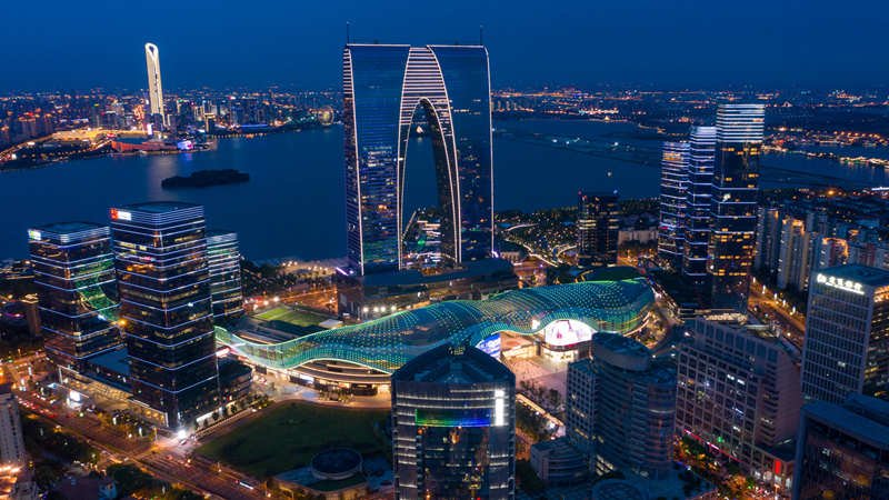 苏州工业园区金鸡湖畔夜景