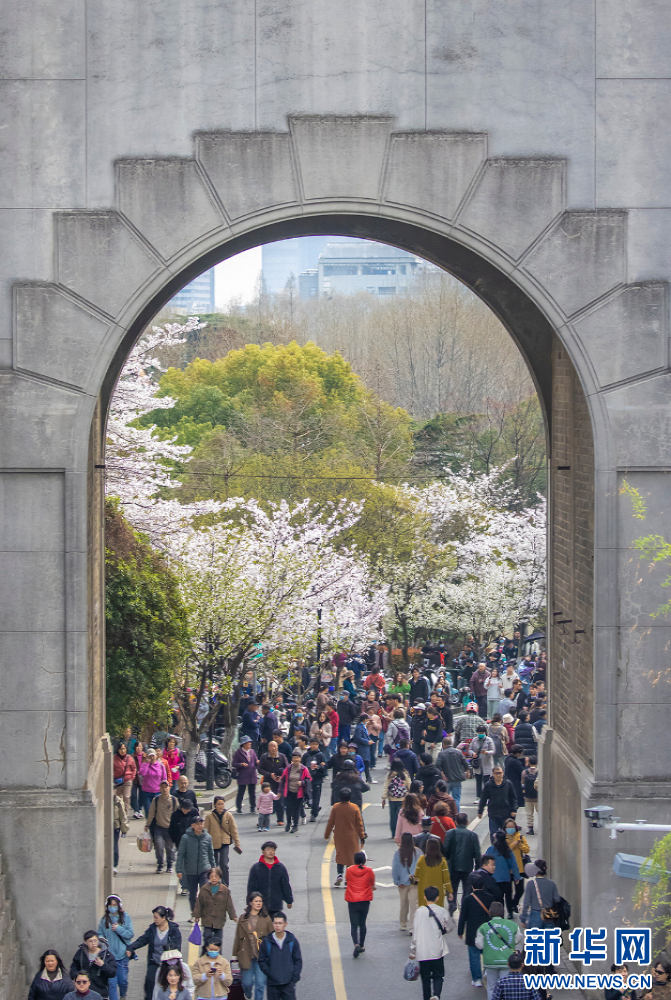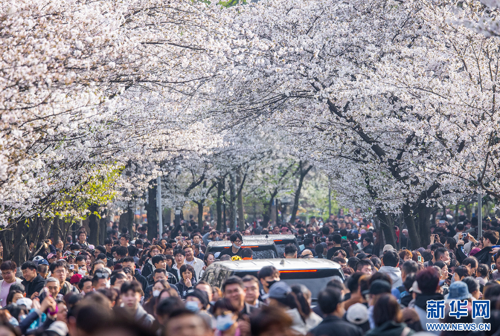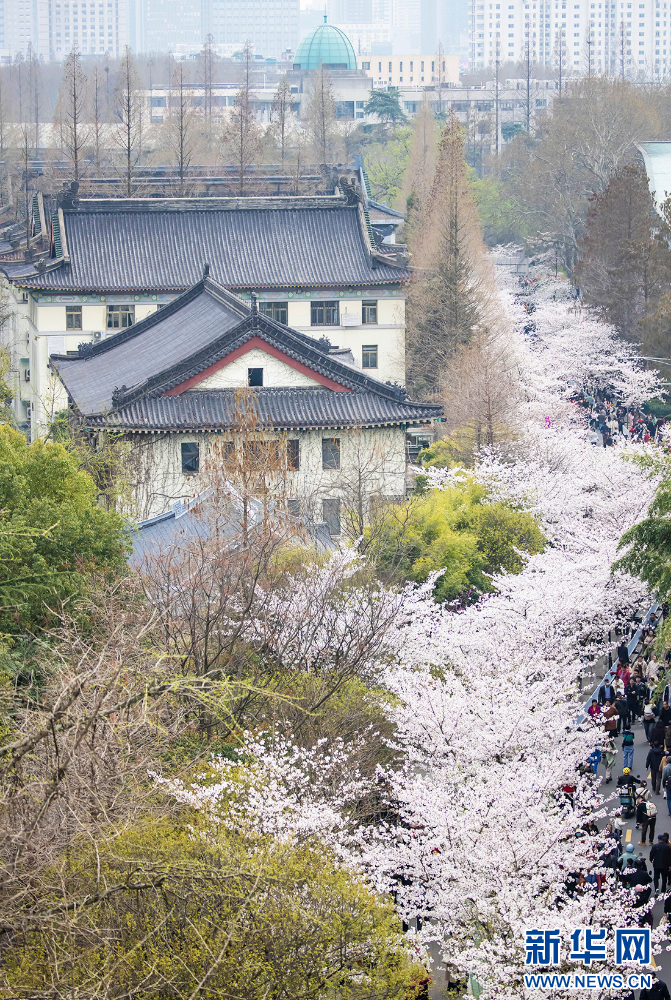 鸡鸣寺樱花是南京春日“限定”的动人景致。这几天,鸡鸣寺樱花进入盛开期,粉色的花海和古色古香的建筑交相辉映,勾勒出一幅美丽的画卷,吸引众多游人前来打卡。(沙芳如 报道员:刘伟)