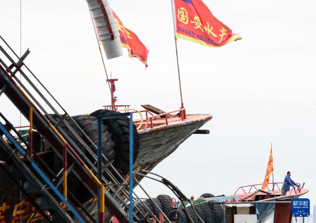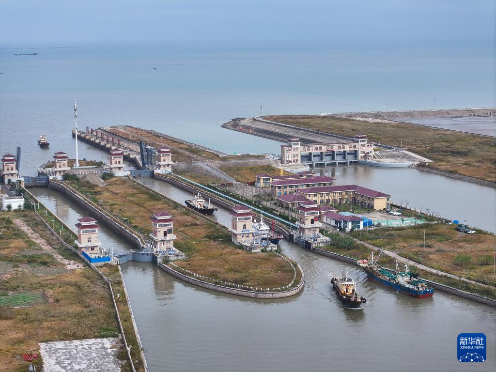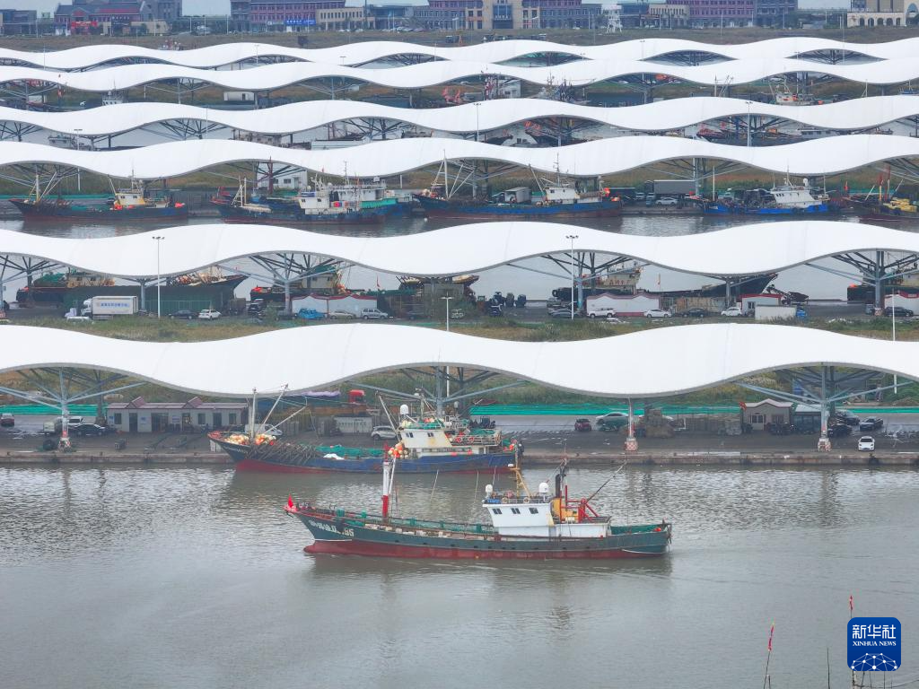 渔船进入启东吕四渔港(11月10日摄,无人机照片)。
