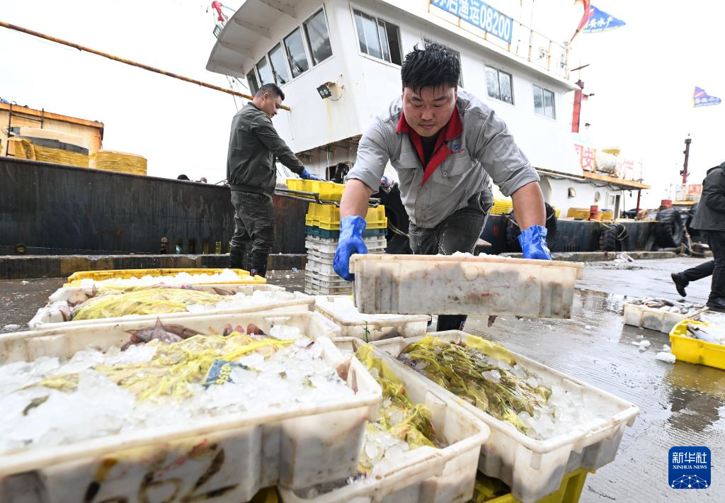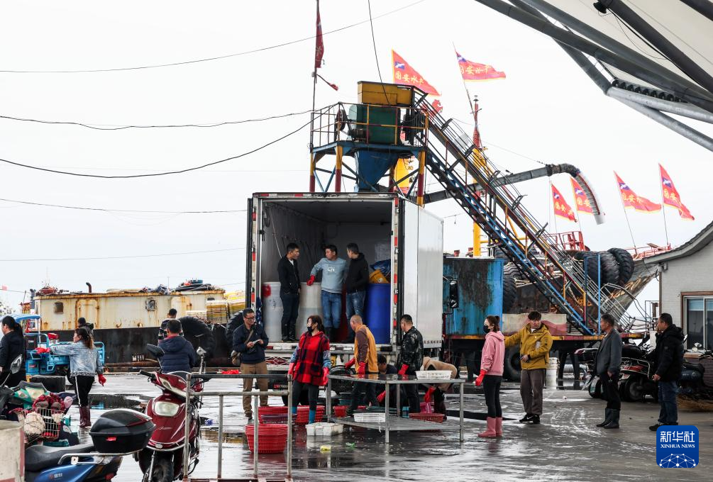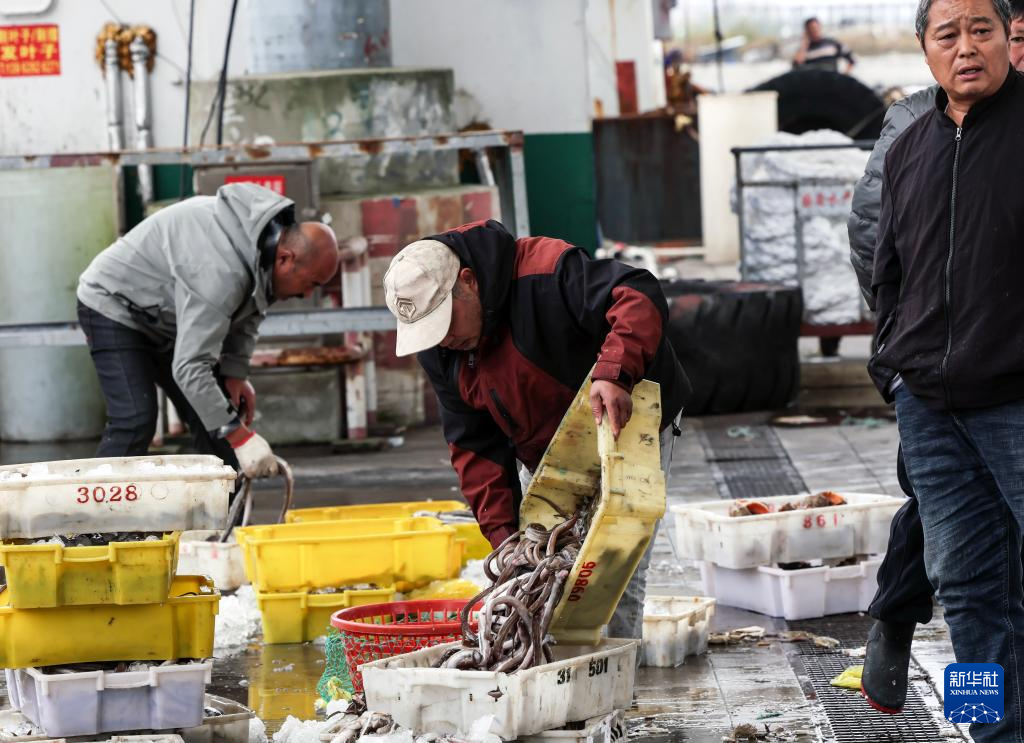 近日,江苏启东吕四渔港码头一片热闹景象,渔民们忙着卸运、分类处理刚刚到港的多种新鲜海产品。获评“全国文明渔港”的江苏启东吕四渔港是首批国家级六大中心渔港之一,也是目前国内规模较大、配套设施较完善的综合性人工渔港。吕四渔港背依吕四渔场,是周边地区海洋捕捞船舶的主要出海通道和停泊港口,也是全国著名的水产品批发市场。