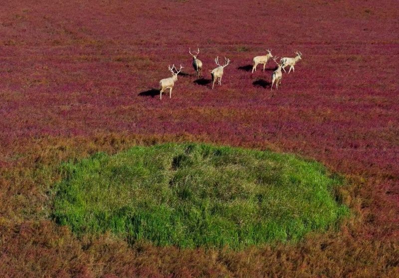 行走在沿海公路,不时能看到成群麋鹿在滩涂上觅食、嬉戏。20世纪初在中国绝迹的这一物种,曾在中国生活数百万年。1986年,从英国引进的39头麋鹿,来到大丰麋鹿国家级自然保护区,回归其野生祖先曾栖息的沿海滩涂。