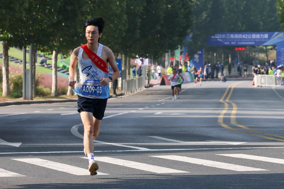 11月2日,2025长三角高校42公里接力赛在南京建邺区江心洲鸣枪起跑,来自长三角地区三省一市的100余所高校、近200支代表队参赛。