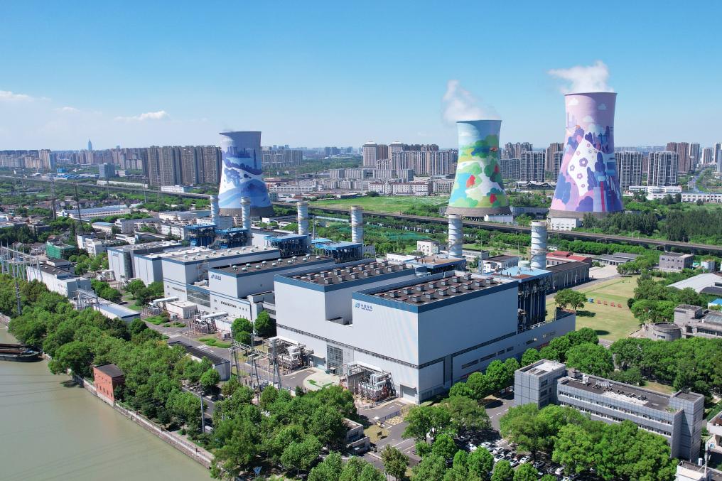 在大运河常州段,江苏华电戚墅堰发电有限公司三座巨大的冷凝塔伫立在河畔,它们经过精心设计,将城市地标等元素巧妙入画,引得不少人拍照打卡。