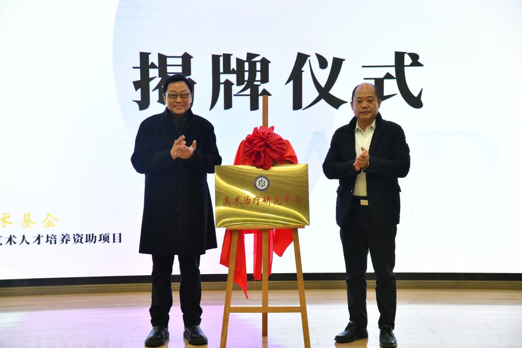 仪式现场,“美术治疗研究中心”正式揭牌成立。该中心将作为江苏省艺术治疗领域重要产学研平台,聚焦临床干预研究、行业标准制定、专业人才孵化三大核心任务,为艺术治疗学科的系统构建、行业标准的前瞻研究提供关键支撑。