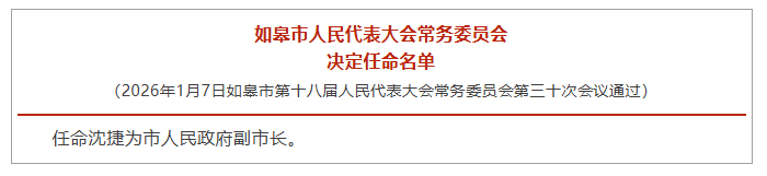 沈捷任如皋市人民政府副市长
