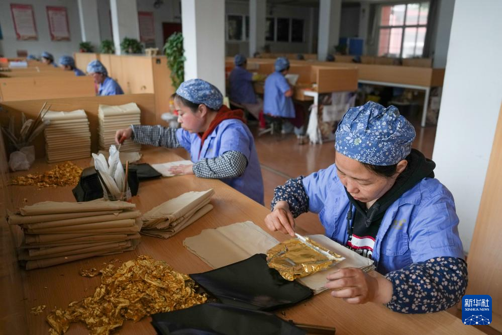 在南京金陵金箔集团股份有限公司,工人将切制好的金箔产品进行分装(2月10日摄)。