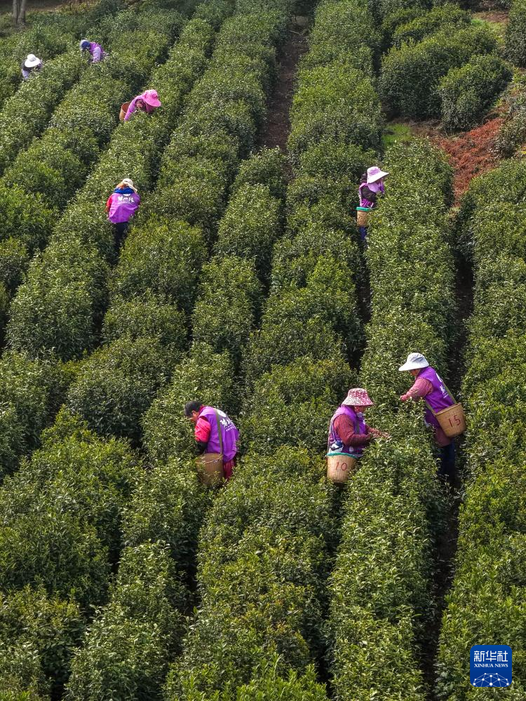 3月20日是春分节气,位于江苏省苏州市吴中区的洞庭山碧螺春茶园迎来“明前茶”集中采摘期。今年入春以来,洞庭山碧螺春茶产区气温适宜、光照充分,有利于茶树萌芽和鲜叶采摘。