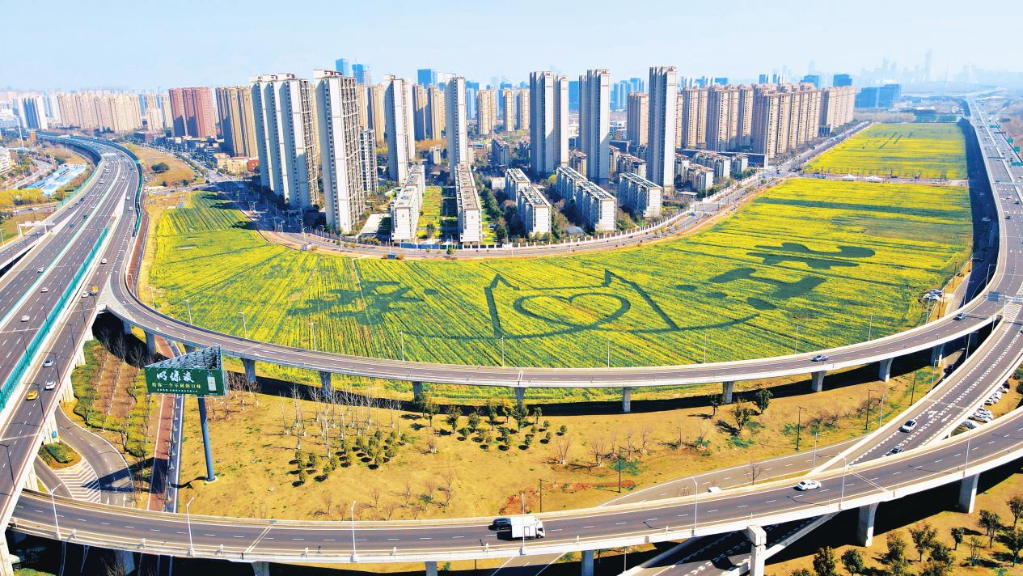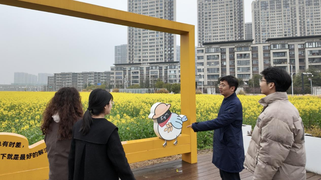 眼下,南京江北新区的一片都市田园春意盎然,连片油菜花竞相绽放,花海与大地艺术景观相映成趣,浦云路大桥等地标融入田园野趣。市民和游人徜徉花间,感受着乡土田园带来的身心疗愈。这些场景和效果,得益于南京农业大学魏家星教授团队的科研实践。团队以园艺康养理念融合乡村景观营造的创新模式,将园艺疗愈、自然健康理念与乡村的规划设计、产业发展深度融合,走出了一条以自然之力激活乡村生态、经济、民生多重价值的特色路径。团队现场负责人褚晨晖介绍道:“对很多人来说,这片花海也是一种乡愁的疗愈链接。看见油菜花会想起童年沾满花粉的袖口,想起灶台飘出的菜籽油香,想起田埂上跑过的一个又一个春天。”