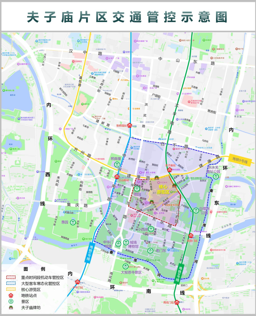 1.建康路、中华路、长乐路、平江府路合围区域内(含平江府路),禁止机动车驶入,公交车、景区接驳车辆、执行紧急任务的特种车辆除外,区域内单位和居民机动车、接送学生机动车、就餐和住宿机动车报备通行。